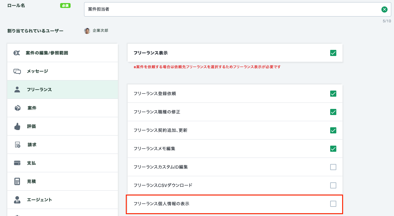 フリーランスの個人情報を保護する権限を追加しました